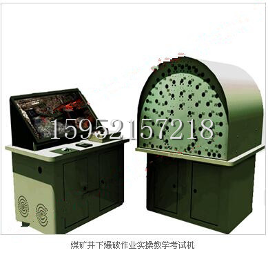 4.设备兼备爆破智能教学系统,将多媒体动画教学和现场实操相结合,通过多媒体交互技术将文字、图像、动画、视频、音乐、音效等数字资源通过编程方法整合在一个互动式的整体中,将爆破过程通过仿真工作面,显示断面的炮眼布置方式(掏槽眼、辅助眼、起底眼、周边眼和水沟眼),炮眼形状及空间位置,让学员观察其结构。用无药雷管(可测量电阻)、药卷、水炮泥(实物)、黏土炮泥、炮棍、装药工具、发爆器、导通表、爆破电网测定表等,使学员实际操作装药方法(正向装药和反向装药)和连线方式(串联和并联),检测网路,声、光、电模拟其爆破过程。计算机识别装药是否正确,教师可随机给定的考生装药、连线方式。